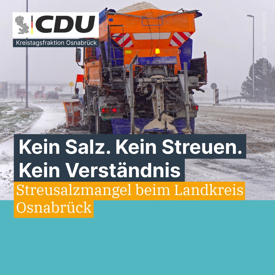 Angesichts der aktuellen Witterungslage und des Streusalzmangels im Landkreis Osnabrück zeigt sich die CDU-Kreistagsfraktion besorgt über die Auswirkungen auf die Verkehrssicherheit.